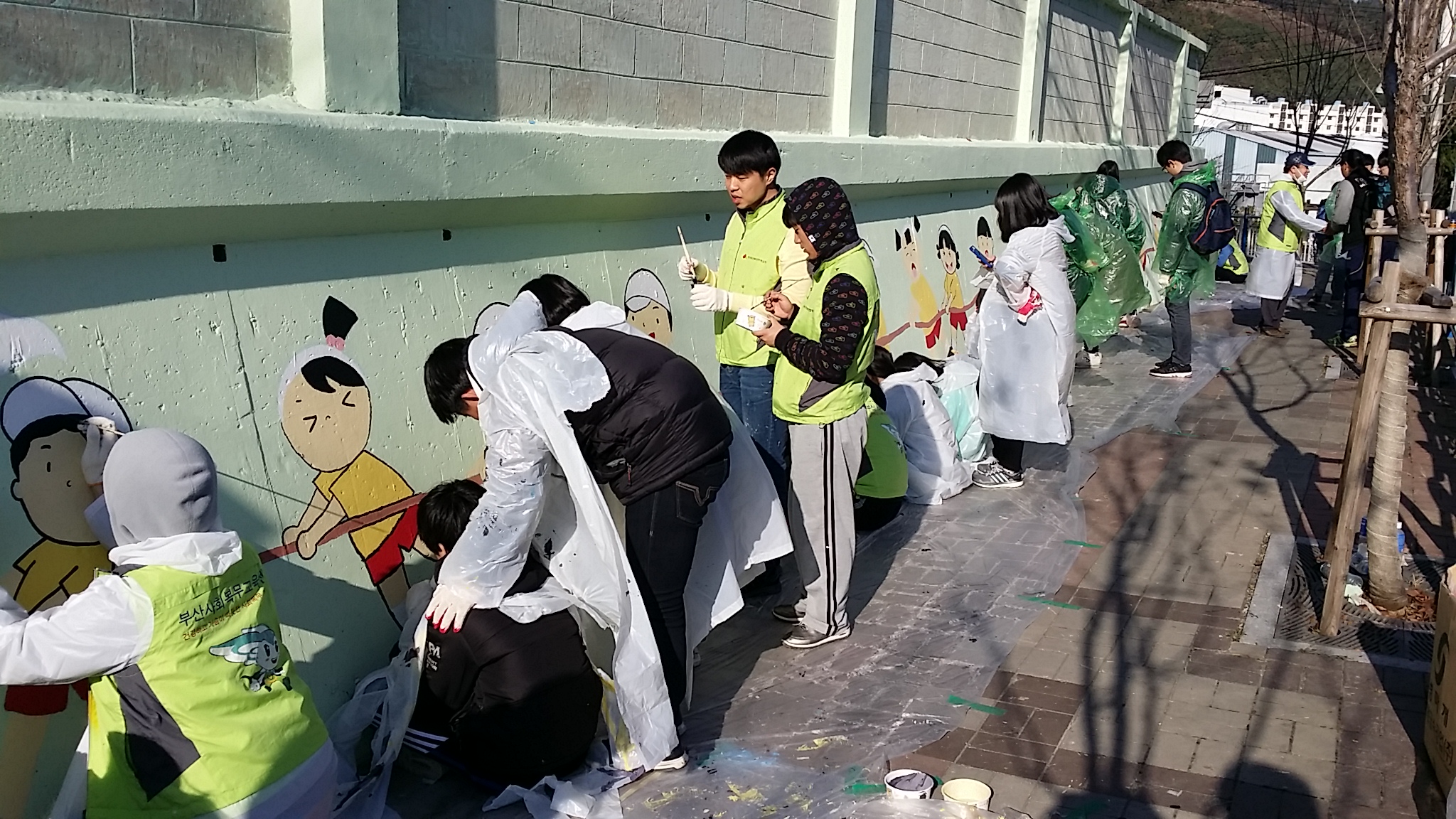 부산사회복무교육센터, 회동초등학교 담벼락에 벽화그리기 실시