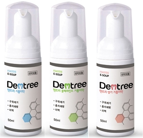 ‘덴트리 거품치약’은 거품형태의 치약으로 칫솔 없이 입 안에 분무하여 가글만 해도 양치질이 가능한 제품이다. 또한 50ml의 휴대하기 간편한 크기로 한 달 반까지 사용 가능한 것이 특징이며, 애플민트, 딸기, 페퍼민트 등 총 3종으로 향을 골라서 사용할 수 있다.
