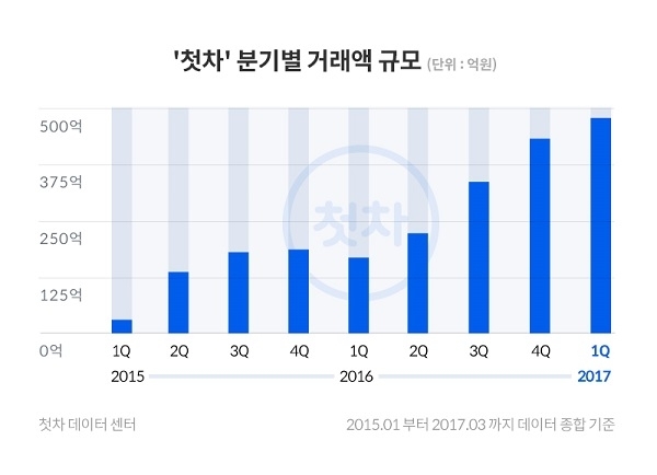 또한 첫차는 지난 해 12월부터 ‘닐슨 코리안클릭’에서 집계한 ‘중고차 앱 월간 이용자수’ 순위에서 기존 중고차 서비스들을 제치고 3개월 연속 1위를 차지하며 동종 업계에서 주목을 받고 있다.