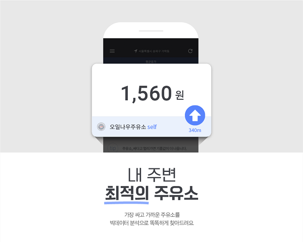 오일나우는 운전자 인근 최적의 주유소를 자동으로 추천해주는 서비스다. 한국석유공사와의 제휴를 통해 제공받는 전국 주유소 및 유가 정보에 자체 분석 알고리즘을 적용해 가장 가깝고 저렴한 주유소를 추천해준다.